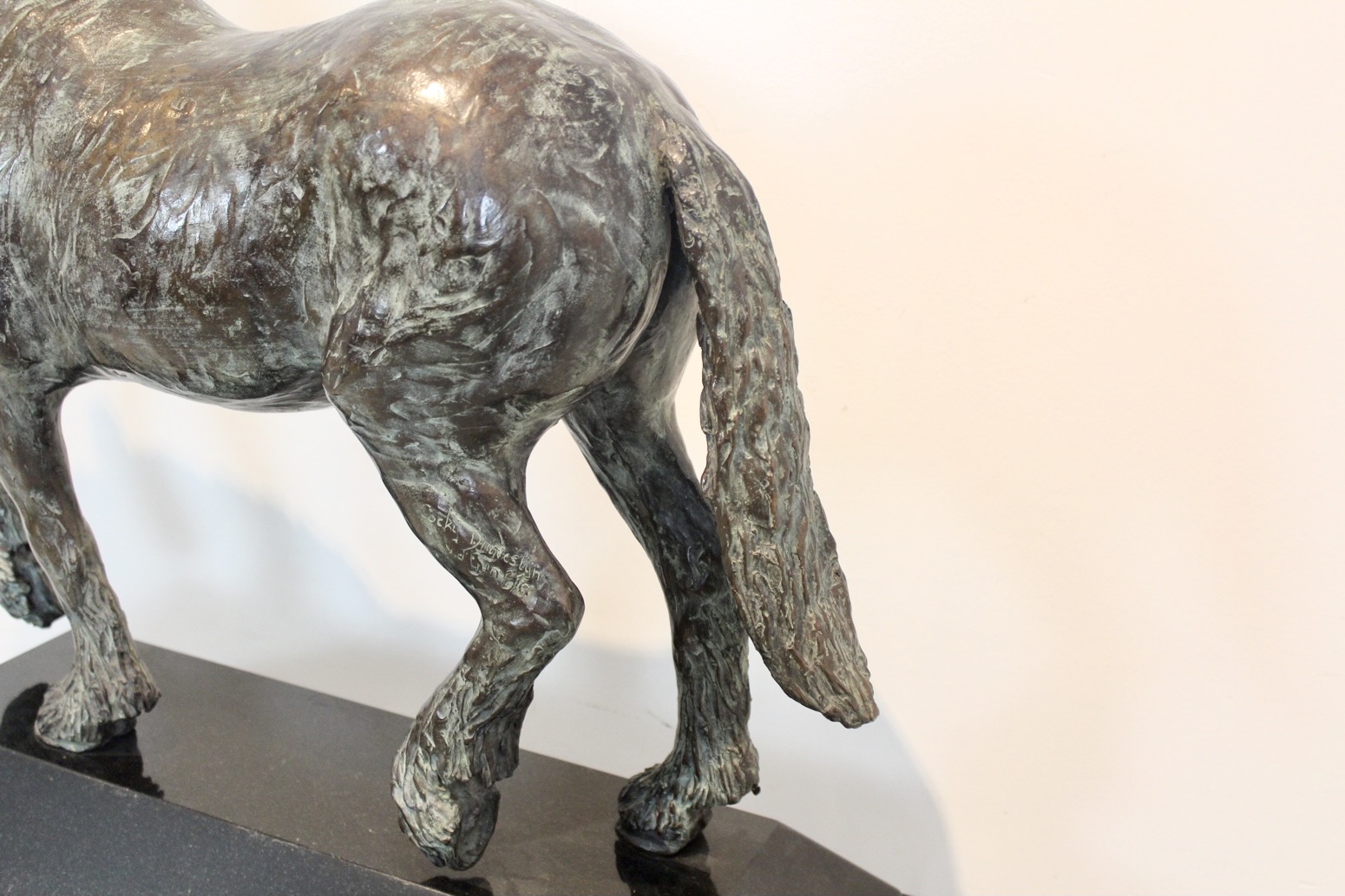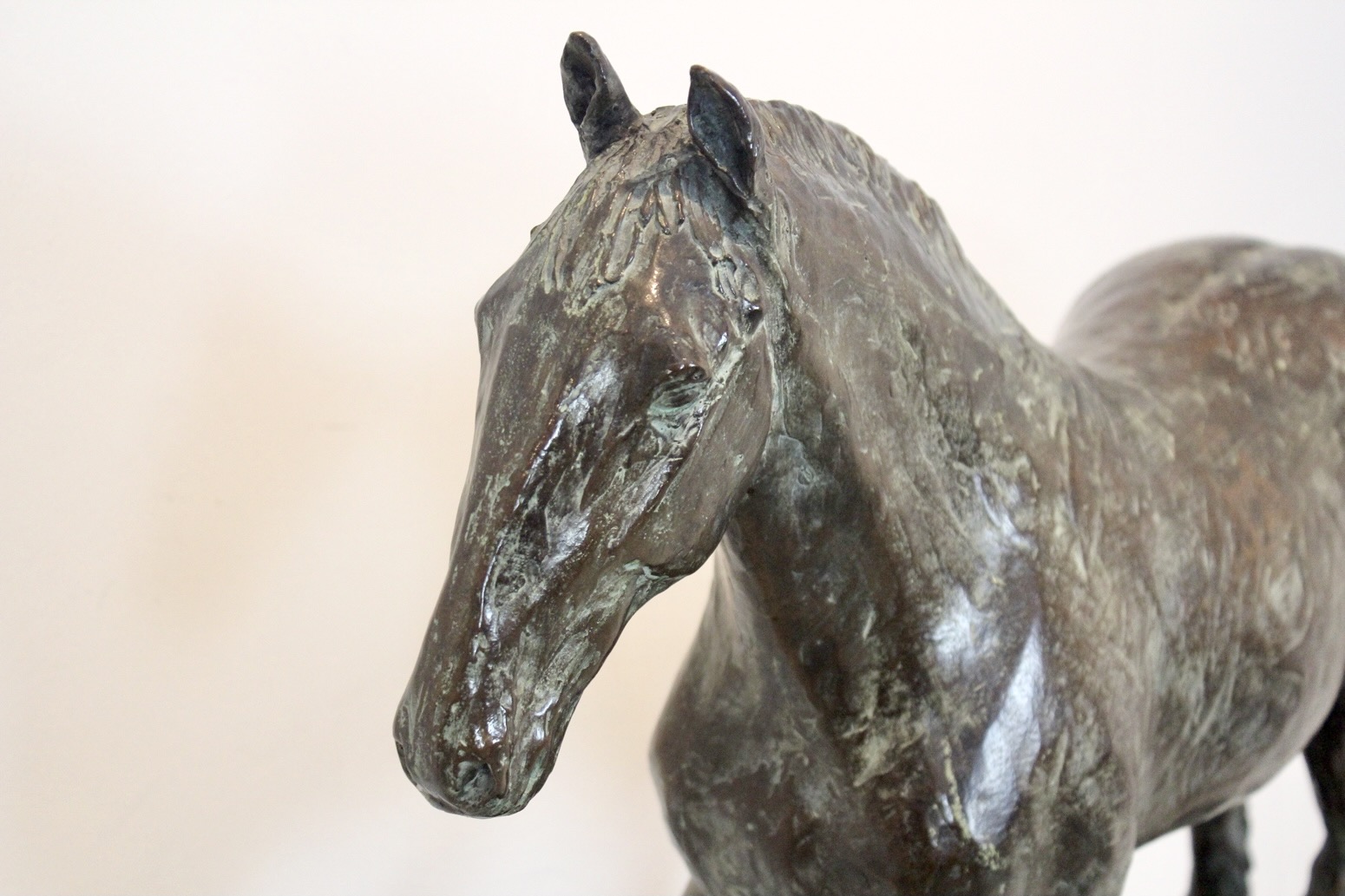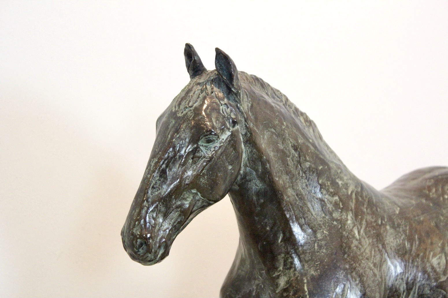 A truly eye catching Bronze Sculpture named ‘a Horse’, designed and made by Dutch Sculpture Artist Cocky Duijvesteijn van der Gun. Number 2 of 8 ever made, signed by the artist and numbered on the left rear leg. In very good condition. Made of Bronze and comes with a specially made metal pedestal. Very elegant and beautifully styled with nice patin with many beautiful details. The artist is known because of the way she brings these sculptures to live.