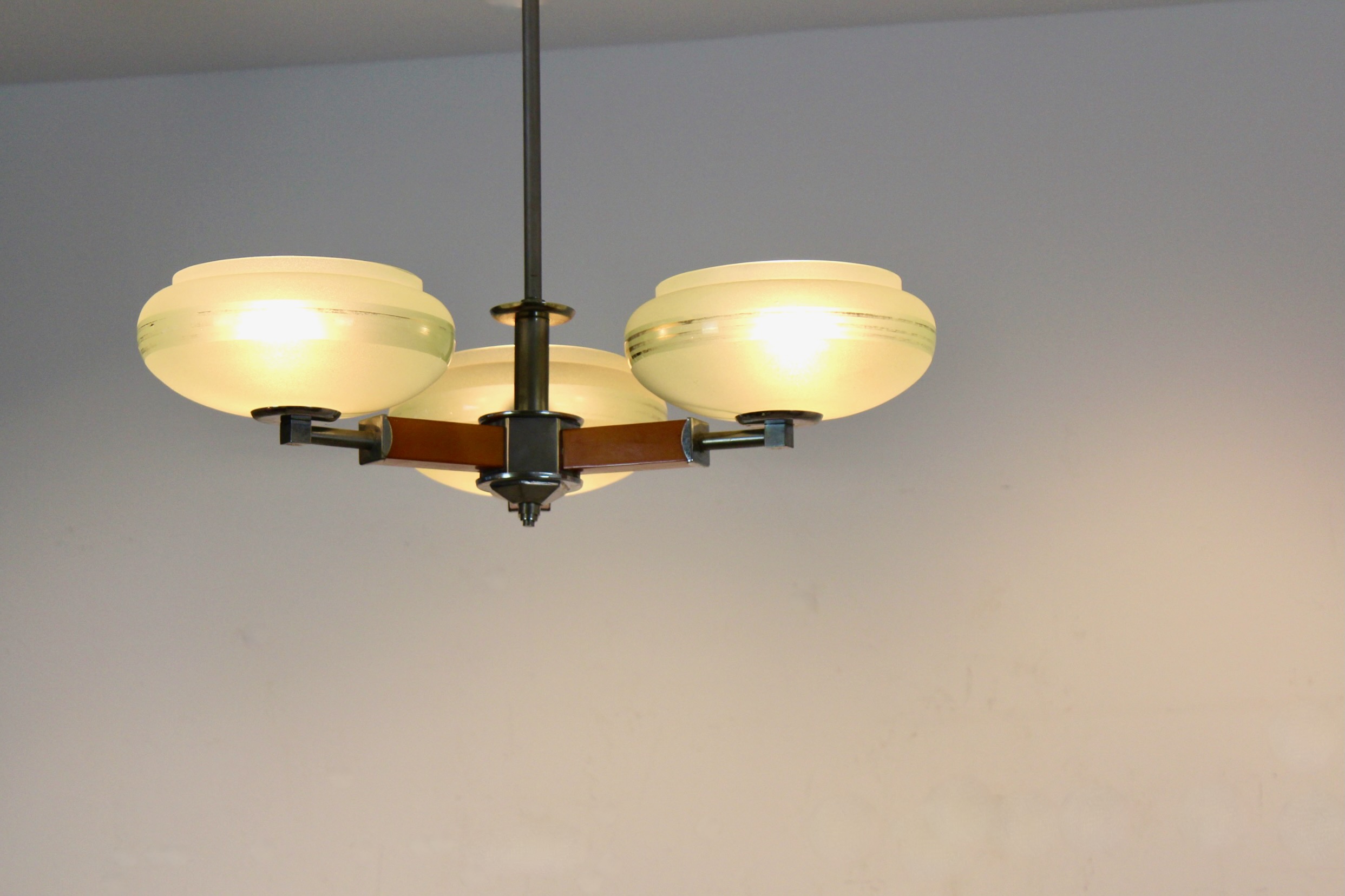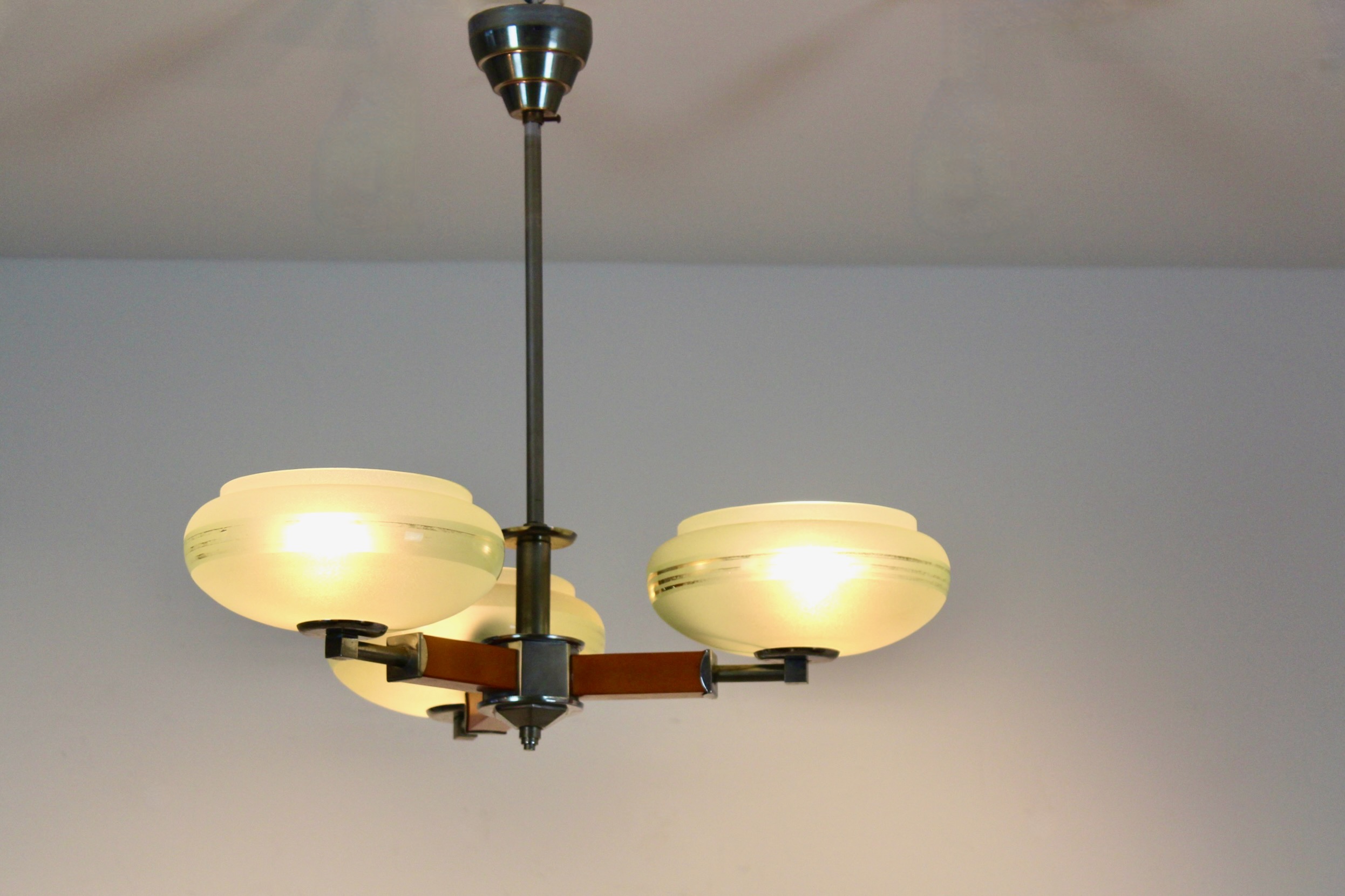 Czechoslovak Functionalist Art Deco Chandelier, circa 1930–1935