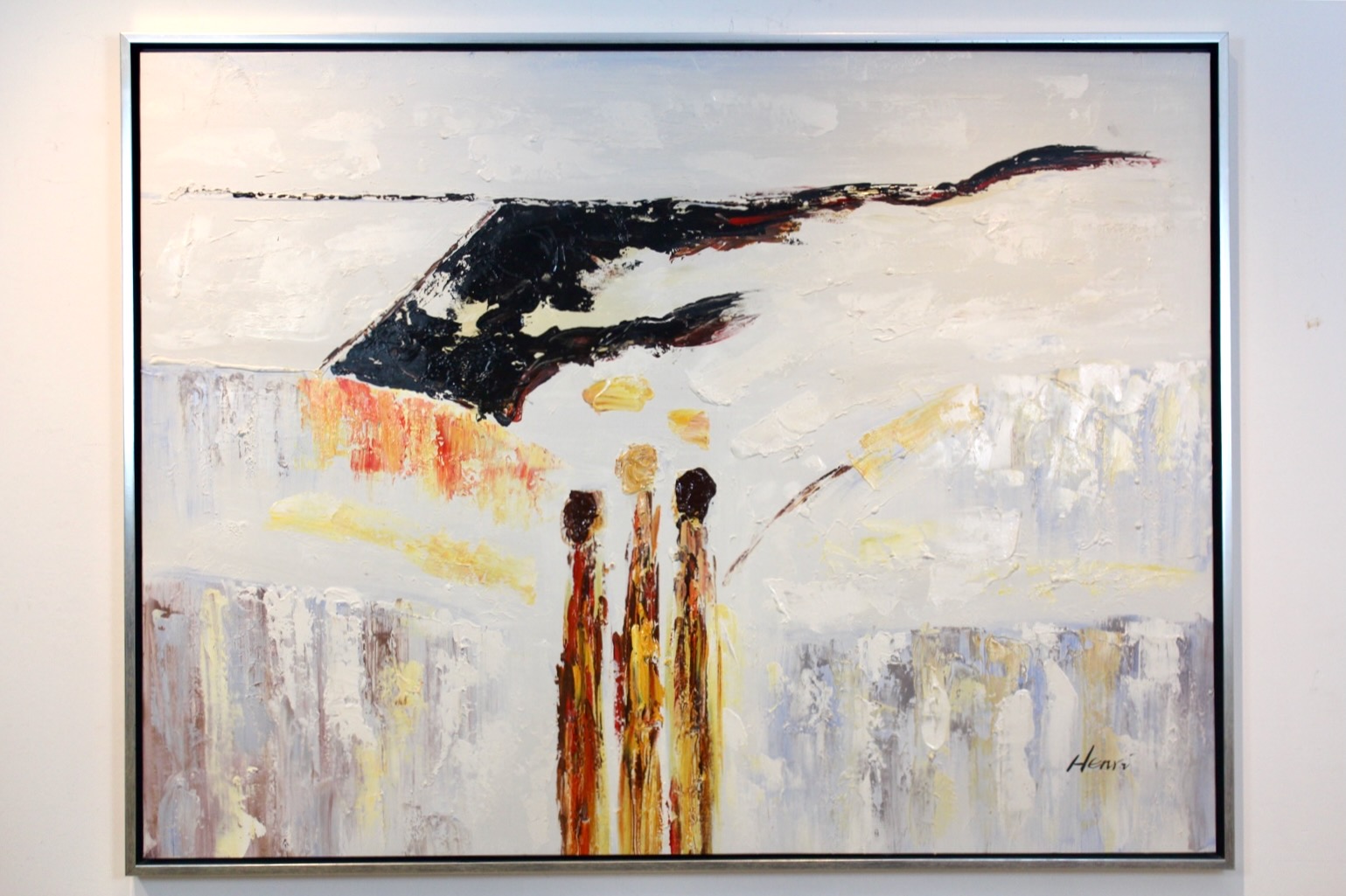 Exquisite Oil painting on Canvas, painted and hand-signed by Henri in France. Titled ‘Life and Warmth’ and part of his ‘Life `collection. Sophisticated and charming painting in beautiful colors with natural colors, black and snowy white as the basis. Professionally framed in a silver and black wooden frame. The painting comes from an art collector and gallery with certificate of authenticity and is in very good condition.