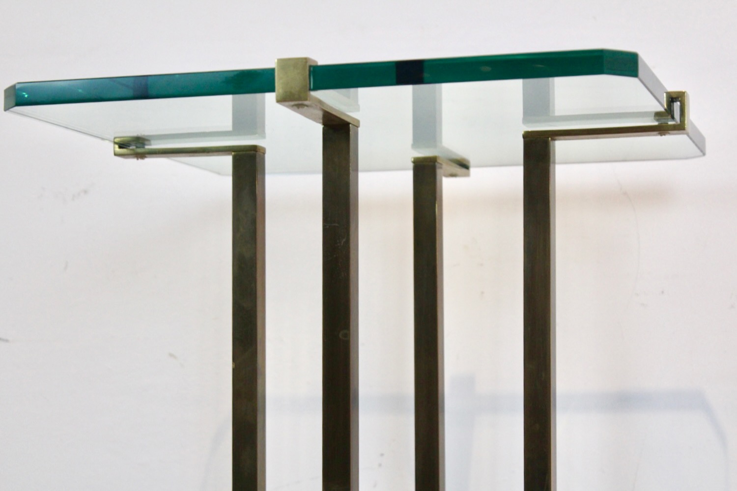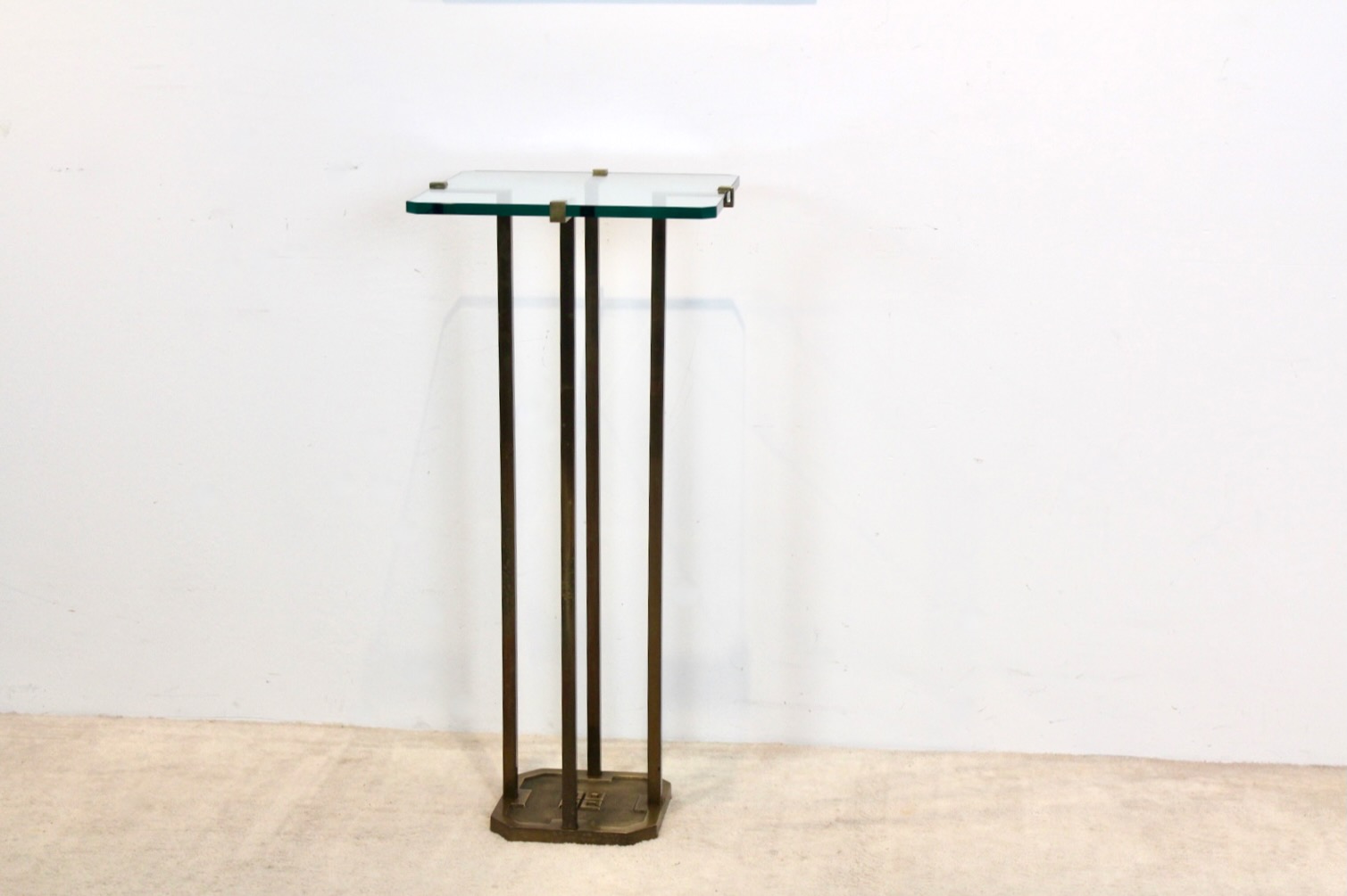 Minimalist Peter Ghyczy Brass and Glass Pedestal Table