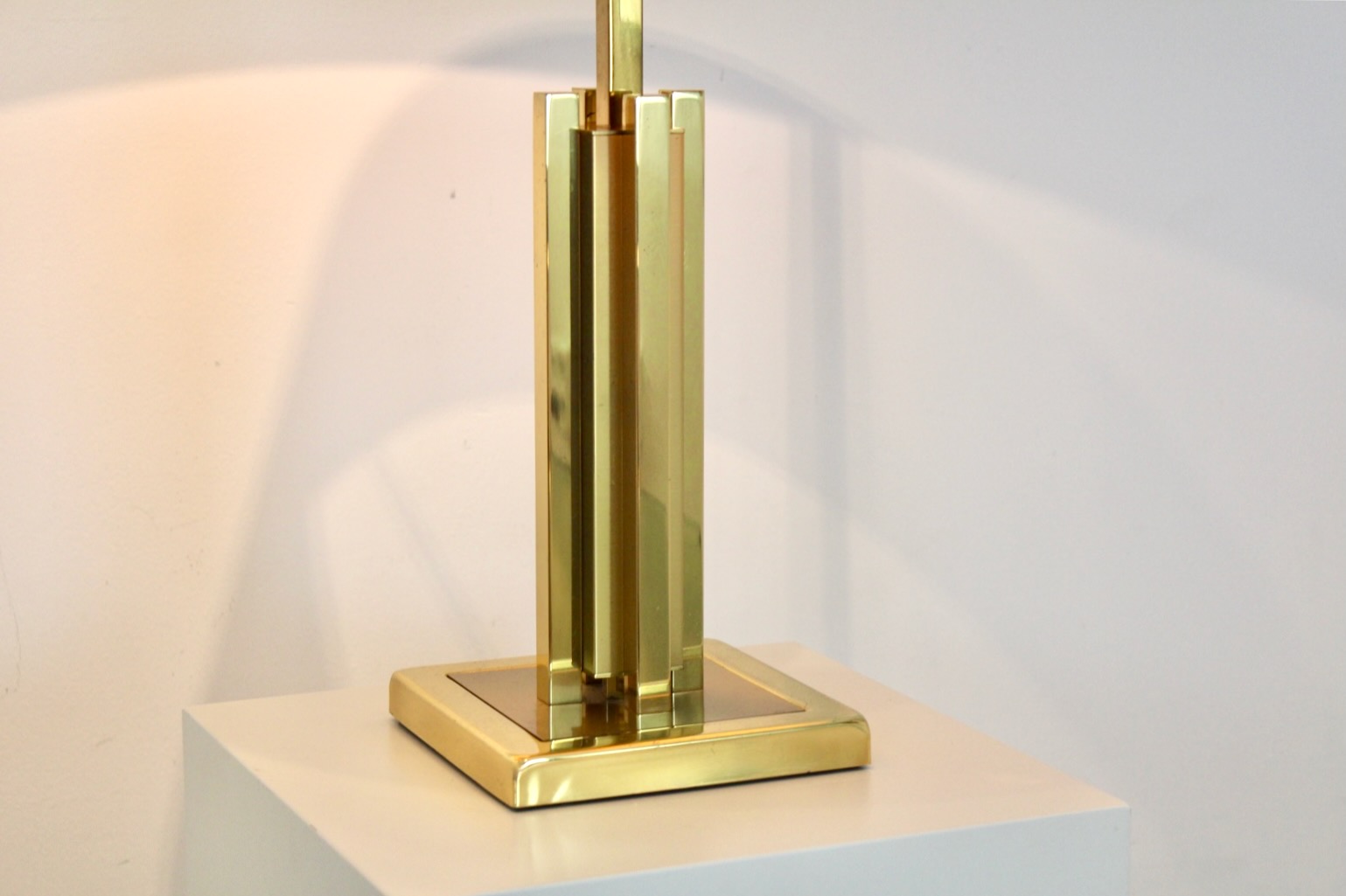 A striking pair of sculptural table lamps designed and manufactured by Boulanger, Belgium, circa 1970s. These lamps showcase the brand’s signature craftsmanship in brass with clean architectural lines and a refined, modernist silhouette.