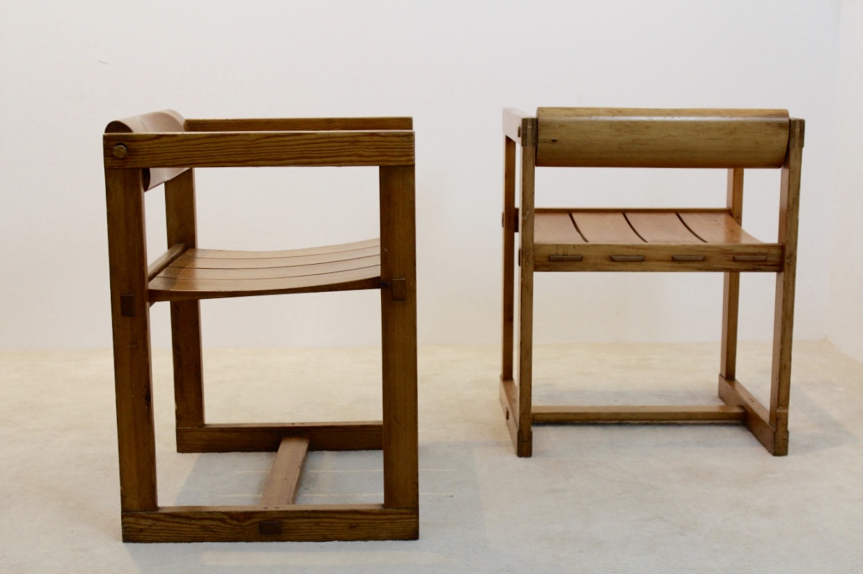 Set of 2 Edvin Helseth Pinewood chairs with armrests, Trybo Norway