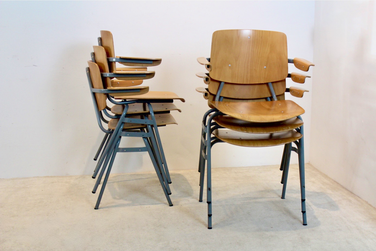 Set of Stackable Plywood CAR ‘305-Chairs’ with Armrest by Kho Liang Ie & J. Ruigrok, 1957